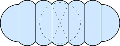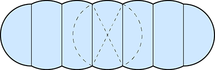 Dans l’exemple ci-contre, on voit la coupe d'un pneumatique telle qu’on souhaiterait qu’elle soit. Cependant, en faisant passer un cercle par les points de jonctions des séparateurs (limites d'extension), on peut voir qu'il y a un excédant de membrane. Le cercle étant la forme optimale, c'est donc qu'on n'a pas atteint au plus grand volume possible.