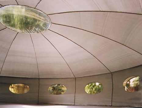 • Le profil bas offre aussi l’avantage de réduire le volume en comparaison avec un gonflable hémisphérique de même surface de plancher. Par exemple, pour un diamètre de 20 m (740 m2), c’est un gain d’environ 25%. Un plus grand diamètre augmentera le ratio. La réduction du volume d’air à traiter, c’est autant de gains en efficacité.