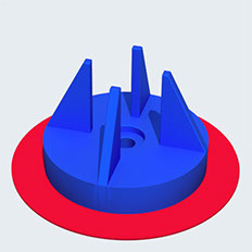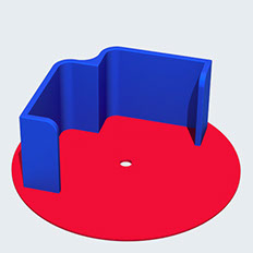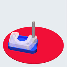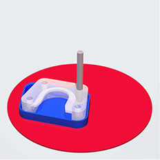 L'exemple suivant est un système dédié à une perceuse à colonne. Dans le cadre d'un projet en développement, plusieurs pièces spéciales étaient nécessaires pour réaliser le prototype. Une pièce maîtresse de chacune a d'abord été réalisée par impression 3D, puis reproduite par moulage pour obtenir les quantités nécessaires. Chacune comportaient une série de trous à percer selon des positionnements précis sur des pièces aux formes particulières.