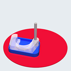 • Pour le positionnement de pièces sur 3 axes, on peut utiliser une matrice pour y encastrer la pièce à travailler. Dans l'exemple B, il y a une série de matrices interchangeables qui s'installent sur un réceptacle fixe.